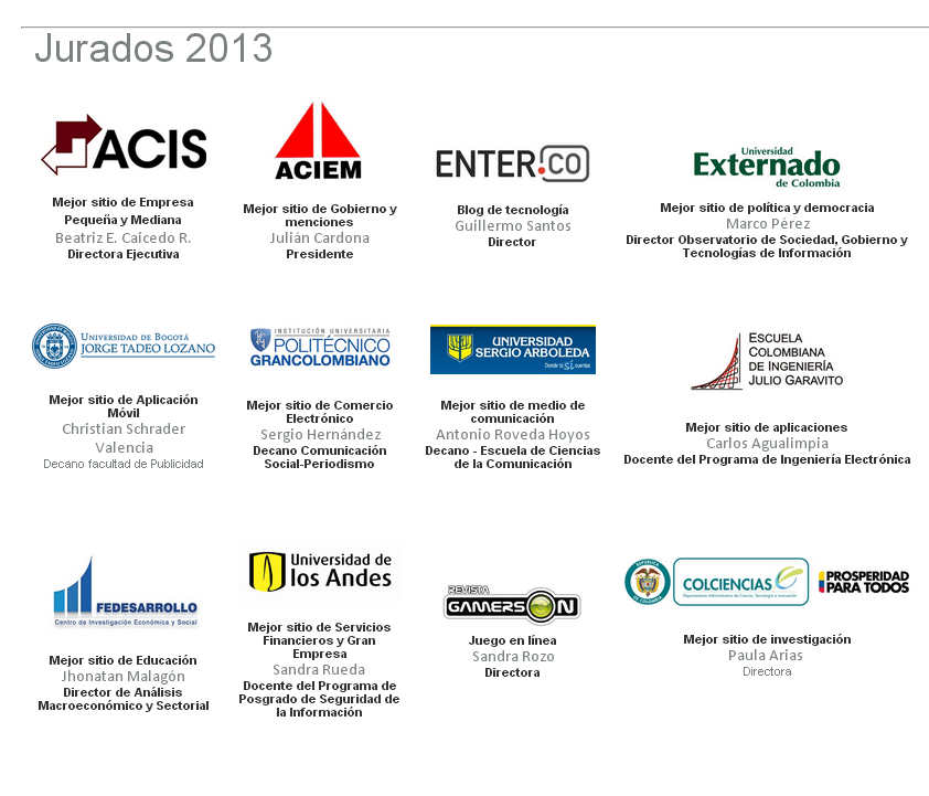 Y es para nosotros un honor estar nominados, ya que el jurado para el 2014 está conformado por personas altamente capacitadas y conocedores del quehacer nacional como son directores, docentes y decanos de universidades e instituciones de amplia credibilidad a nivel nacional.